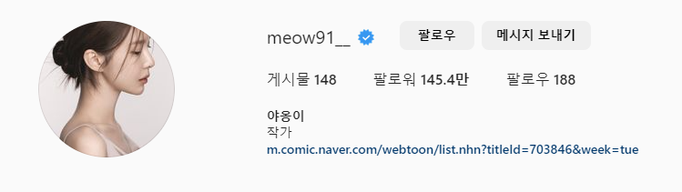 야옹이 작가 인스타그램 중