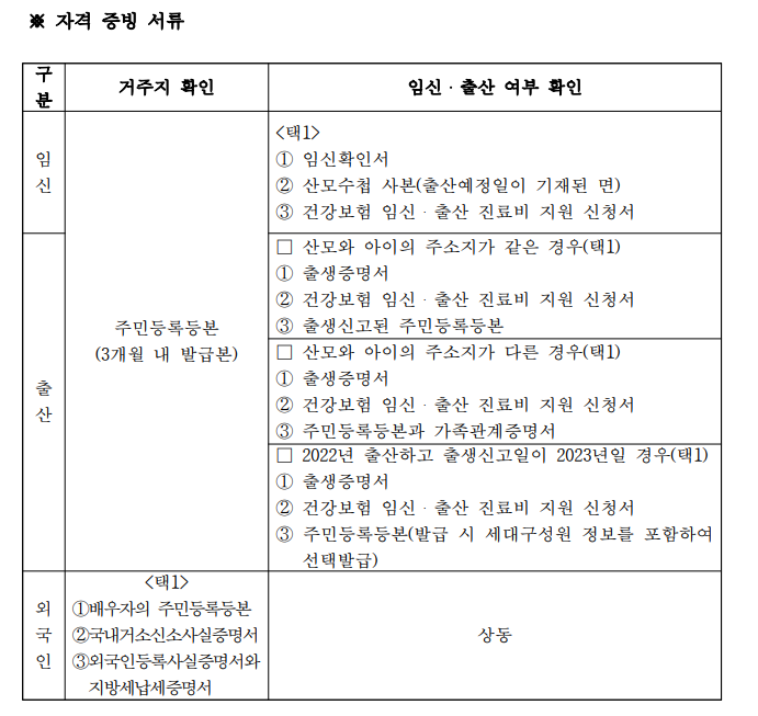 2022년 1월 이후 출산한 산모, 또는 신청일 기준으로 임신 중인 산모