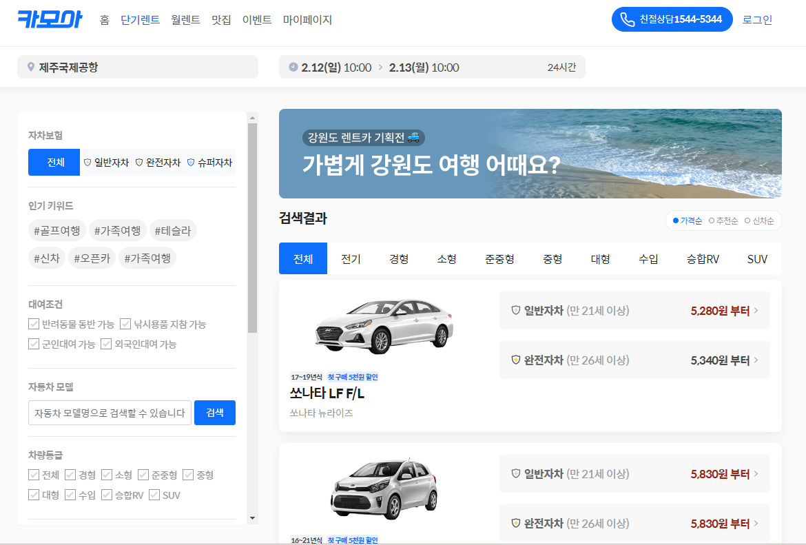 2. 렌터카 실시간 최저가 예약 사이트 [카모아]
