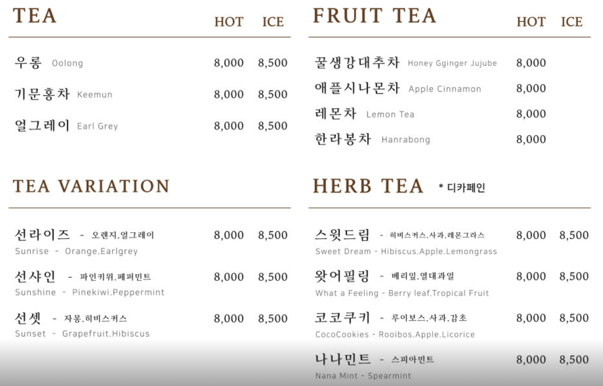 *메뉴와 가격은 매장 상황에 따라 변경될 수 있습니다.